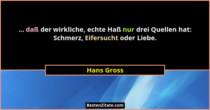 ... daß der wirkliche, echte Haß nur drei Quellen hat: Schmerz, Eifersucht oder Liebe.