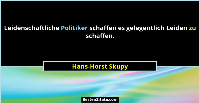 Leidenschaftliche Politiker schaffen es gelegentlich Leiden zu schaffen.