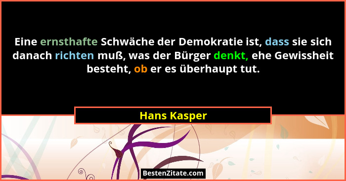 Eine ernsthafte Schwäche der Demokratie ist, dass sie sich danach richten muß, was der Bürger denkt, ehe Gewissheit besteht, ob er es überhaupt tut.