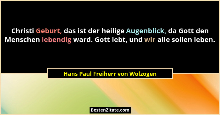 Christi Geburt, das ist der heilige Augenblick, da Gott den Menschen lebendig ward. Gott lebt, und wir alle sollen leben.
