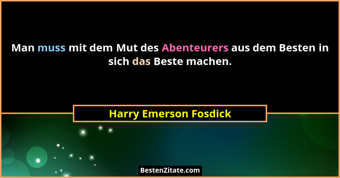Man muss mit dem Mut des Abenteurers aus dem Besten in sich das Beste machen.