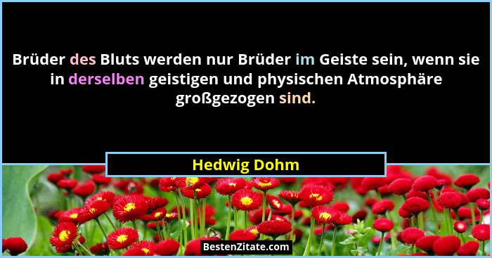 Brüder des Bluts werden nur Brüder im Geiste sein, wenn sie in derselben geistigen und physischen Atmosphäre großgezogen sind.