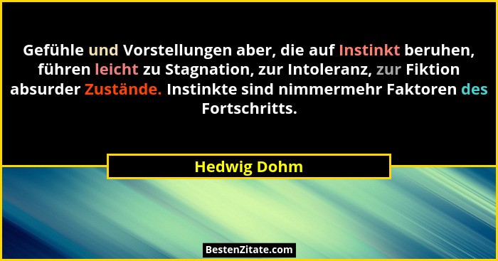 Gefühle und Vorstellungen aber, die auf Instinkt beruhen, führen leicht zu Stagnation, zur Intoleranz, zur Fiktion absurder Zustände. Instinkte sind nimmermehr Faktoren des Fortschritts.