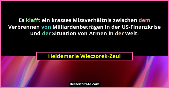 Es klafft ein krasses Missverhältnis zwischen dem Verbrennen von Milliardenbeträgen in der US-Finanzkrise und der Situation von Armen in der Welt.
