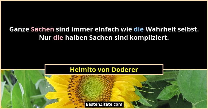Ganze Sachen sind immer einfach wie die Wahrheit selbst. Nur die halben Sachen sind kompliziert.