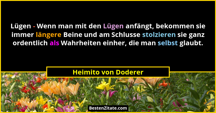 Lügen - Wenn man mit den Lügen anfängt, bekommen sie immer längere Beine und am Schlusse stolzieren sie ganz ordentlich als Wahrheiten einher, die man selbst glaubt.