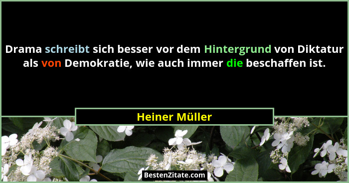 Drama schreibt sich besser vor dem Hintergrund von Diktatur als von Demokratie, wie auch immer die beschaffen ist.