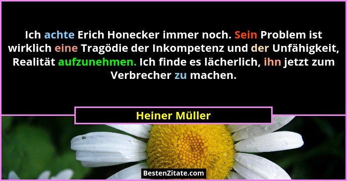 Ich achte Erich Honecker immer noch. Sein Problem ist wirklich eine Tragödie der Inkompetenz und der Unfähigkeit, Realität aufzunehmen. Ich finde es lächerlich, ihn jetzt zum Verbrecher zu machen.