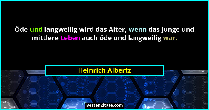 Öde und langweilig wird das Alter, wenn das junge und mittlere Leben auch öde und langweilig war.