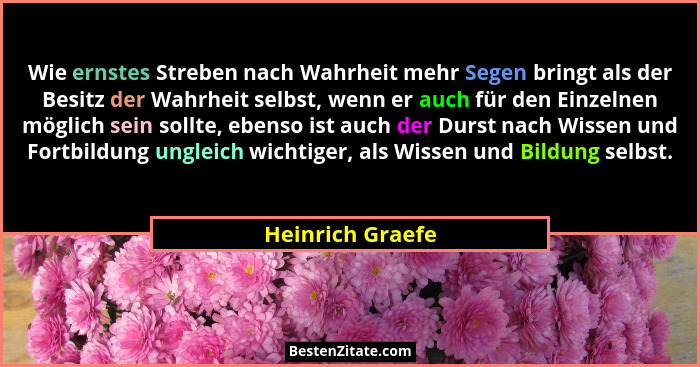 Wie ernstes Streben nach Wahrheit mehr Segen bringt als der Besitz der Wahrheit selbst, wenn er auch für den Einzelnen möglich sein sollte, ebenso ist auch der Durst nach Wissen und Fortbildung ungleich wichtiger, als Wissen und Bildung selbst.