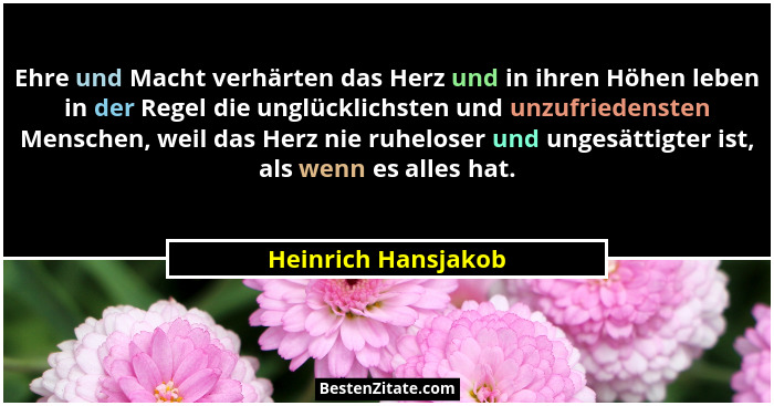 Ehre und Macht verhärten das Herz und in ihren Höhen leben in der Regel die unglücklichsten und unzufriedensten Menschen, weil das Herz nie ruheloser und ungesättigter ist, als wenn es alles hat.