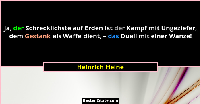 Ja, der Schrecklichste auf Erden ist der Kampf mit Ungeziefer, dem Gestank als Waffe dient, – das Duell mit einer Wanze!