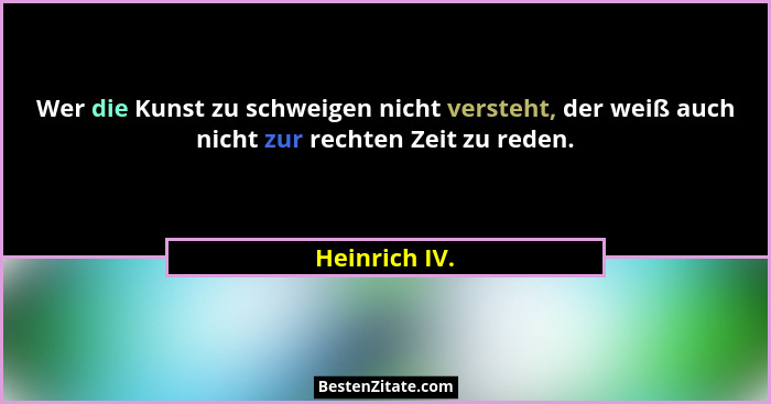 Wer die Kunst zu schweigen nicht versteht, der weiß auch nicht zur rechten Zeit zu reden.
