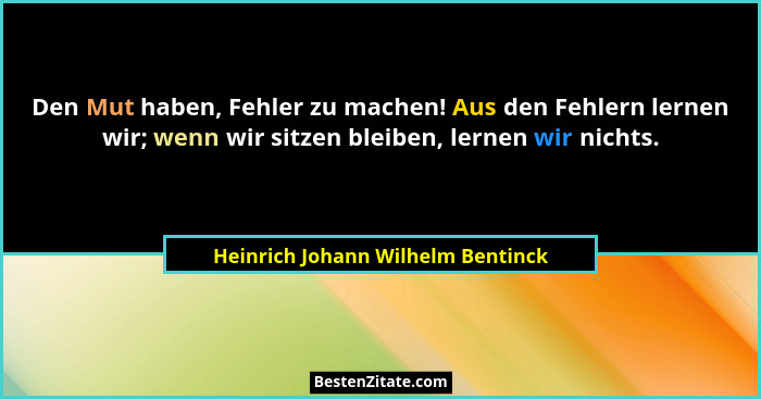 Den Mut haben, Fehler zu machen! Aus den Fehlern lernen wir; wenn wir sitzen bleiben, lernen wir nichts.