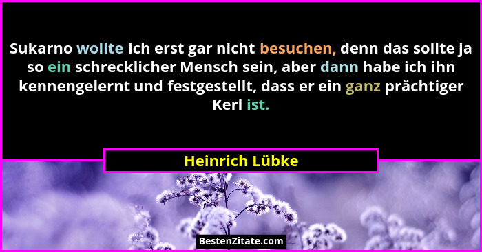 Sukarno wollte ich erst gar nicht besuchen, denn das sollte ja so ein schrecklicher Mensch sein, aber dann habe ich ihn kennengelernt und festgestellt, dass er ein ganz prächtiger Kerl ist.