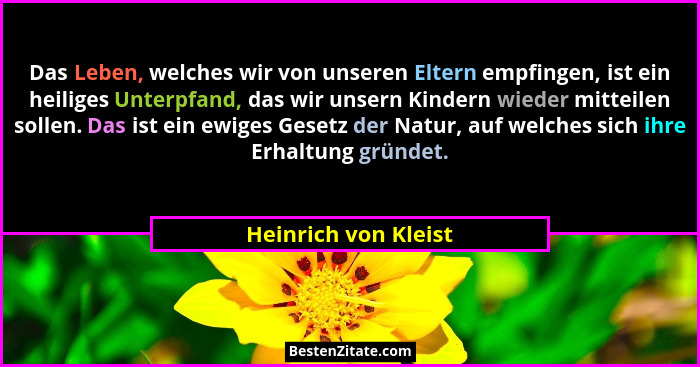 Das Leben, welches wir von unseren Eltern empfingen, ist ein heiliges Unterpfand, das wir unsern Kindern wieder mitteilen sollen. Das ist ein ewiges Gesetz der Natur, auf welches sich ihre Erhaltung gründet.