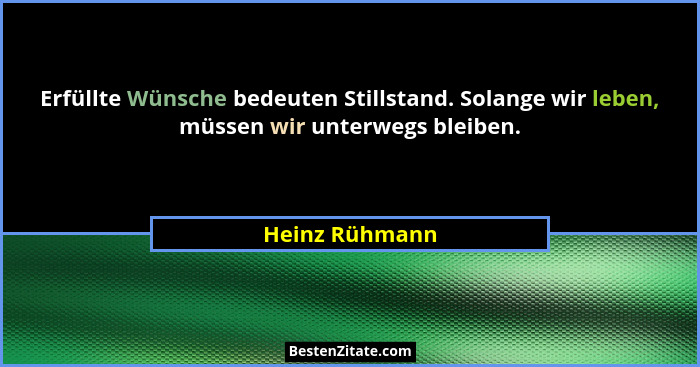 Erfüllte Wünsche bedeuten Stillstand. Solange wir leben, müssen wir unterwegs bleiben.