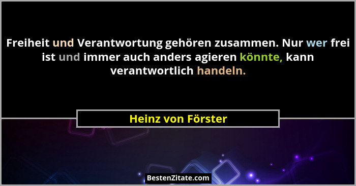 Freiheit und Verantwortung gehören zusammen. Nur wer frei ist und immer auch anders agieren könnte, kann verantwortlich handeln.