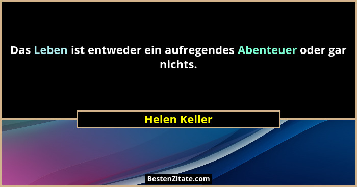 Das Leben ist entweder ein aufregendes Abenteuer oder gar nichts.