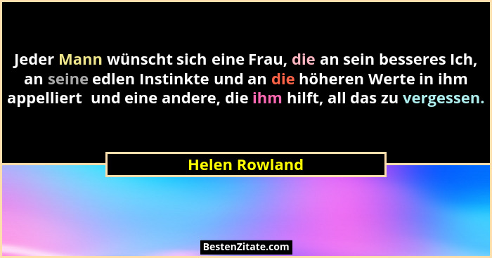 Jeder Mann wünscht sich eine Frau, die an sein besseres Ich, an seine edlen Instinkte und an die höheren Werte in ihm appelliert und eine andere, die ihm hilft, all das zu vergessen.
