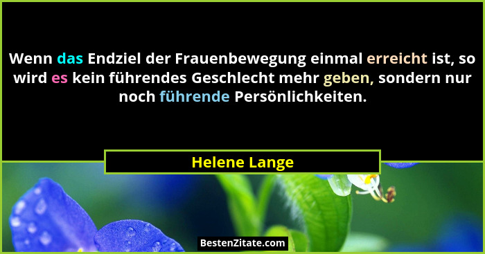 Wenn das Endziel der Frauenbewegung einmal erreicht ist, so wird es kein führendes Geschlecht mehr geben, sondern nur noch führende Persönlichkeiten.