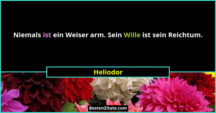 Niemals ist ein Weiser arm. Sein Wille ist sein Reichtum.