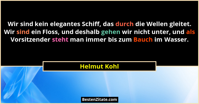 Wir sind kein elegantes Schiff, das durch die Wellen gleitet. Wir sind ein Floss, und deshalb gehen wir nicht unter, und als Vorsitzender steht man immer bis zum Bauch im Wasser.