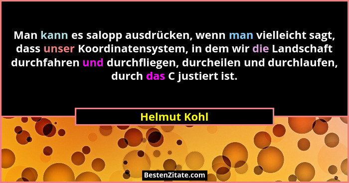 Man kann es salopp ausdrücken, wenn man vielleicht sagt, dass unser Koordinatensystem, in dem wir die Landschaft durchfahren und durchfliegen, durcheilen und durchlaufen, durch das C justiert ist.