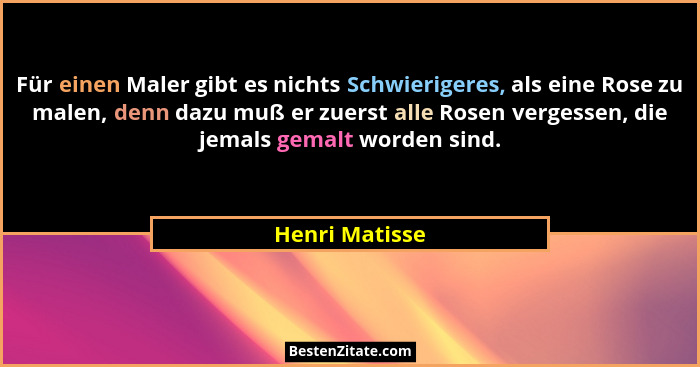 Für einen Maler gibt es nichts Schwierigeres, als eine Rose zu malen, denn dazu muß er zuerst alle Rosen vergessen, die jemals gemalt worden sind.
