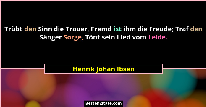 Trübt den Sinn die Trauer, Fremd ist ihm die Freude; Traf den Sänger Sorge, Tönt sein Lied vom Leide.