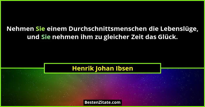 Nehmen Sie einem Durchschnittsmenschen die Lebenslüge, und Sie nehmen ihm zu gleicher Zeit das Glück.