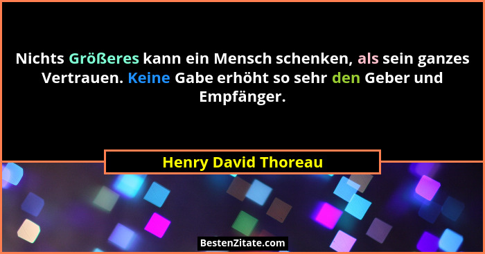 Nichts Größeres kann ein Mensch schenken, als sein ganzes Vertrauen. Keine Gabe erhöht so sehr den Geber und Empfänger.