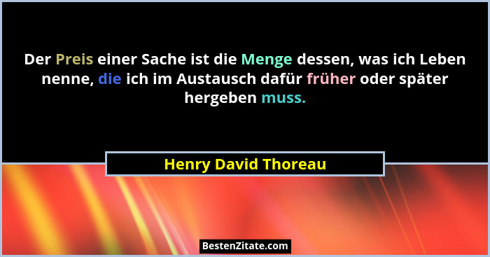 Der Preis einer Sache ist die Menge dessen, was ich Leben nenne, die ich im Austausch dafür früher oder später hergeben muss.