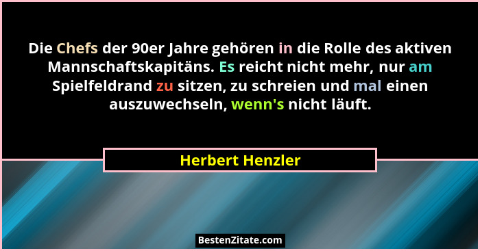 Die Chefs der 90er Jahre gehören in die Rolle des aktiven Mannschaftskapitäns. Es reicht nicht mehr, nur am Spielfeldrand zu sitzen, zu schreien und mal einen auszuwechseln, wenn's nicht läuft.