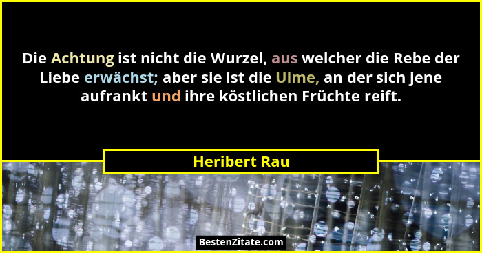 Die Achtung ist nicht die Wurzel, aus welcher die Rebe der Liebe erwächst; aber sie ist die Ulme, an der sich jene aufrankt und ihre köstlichen Früchte reift.