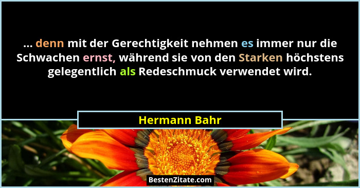 ... denn mit der Gerechtigkeit nehmen es immer nur die Schwachen ernst, während sie von den Starken höchstens gelegentlich als Redeschmuck verwendet wird.
