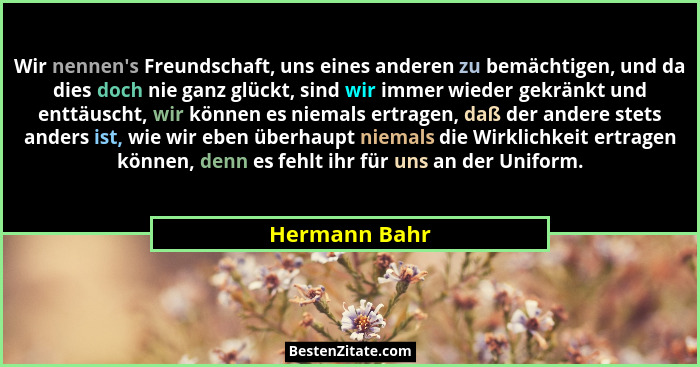 Wir nennen's Freundschaft, uns eines anderen zu bemächtigen, und da dies doch nie ganz glückt, sind wir immer wieder gekränkt und e... - Hermann Bahr