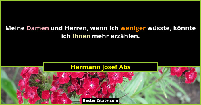 Meine Damen und Herren, wenn ich weniger wüsste, könnte ich Ihnen mehr erzählen.