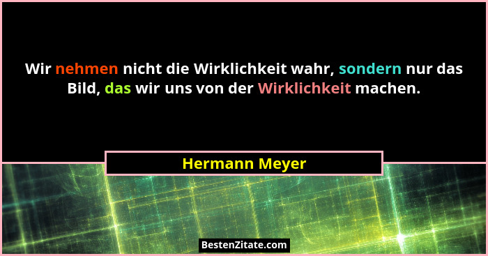 Wir nehmen nicht die Wirklichkeit wahr, sondern nur das Bild, das wir uns von der Wirklichkeit machen.