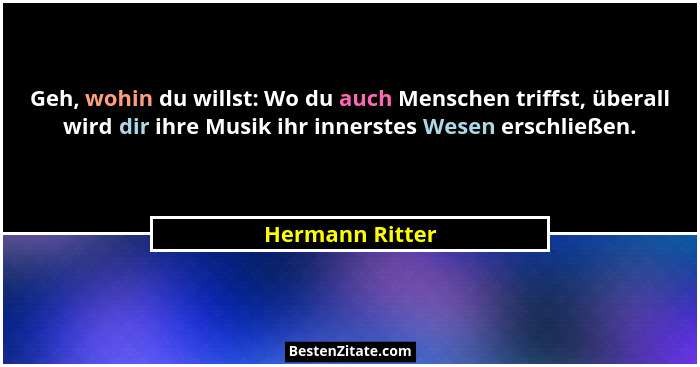 Geh, wohin du willst: Wo du auch Menschen triffst, überall wird dir ihre Musik ihr innerstes Wesen erschließen.
