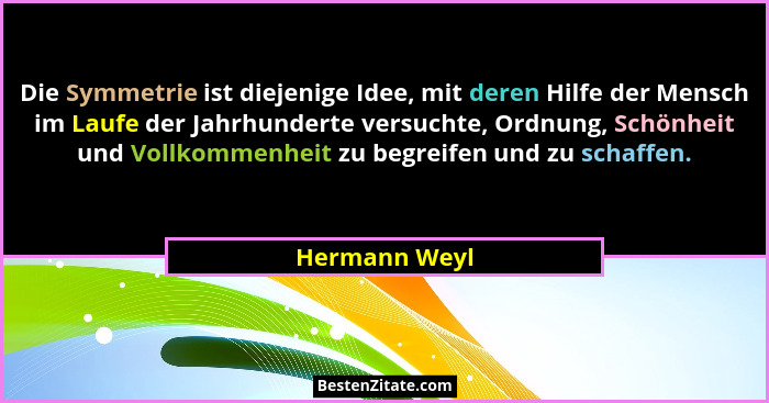 Die Symmetrie ist diejenige Idee, mit deren Hilfe der Mensch im Laufe der Jahrhunderte versuchte, Ordnung, Schönheit und Vollkommenheit zu begreifen und zu schaffen.