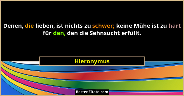 Denen, die lieben, ist nichts zu schwer; keine Mühe ist zu hart für den, den die Sehnsucht erfüllt.