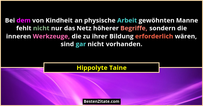Bei dem von Kindheit an physische Arbeit gewöhnten Manne fehlt nicht nur das Netz höherer Begriffe, sondern die inneren Werkzeuge, die zu ihrer Bildung erforderlich wären, sind gar nicht vorhanden.