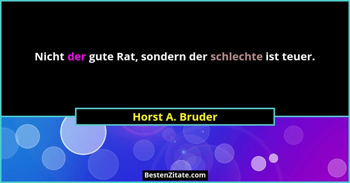 Nicht der gute Rat, sondern der schlechte ist teuer.