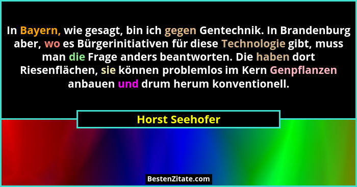 In Bayern, wie gesagt, bin ich gegen Gentechnik. In Brandenburg aber, wo es Bürgerinitiativen für diese Technologie gibt, muss man die Frage anders beantworten. Die haben dort Riesenflächen, sie können problemlos im Kern Genpflanzen anbauen und drum herum konventionell.
