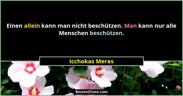Einen allein kann man nicht beschützen. Man kann nur alle Menschen beschützen.