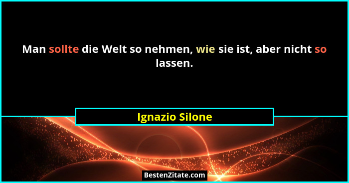 Man sollte die Welt so nehmen, wie sie ist, aber nicht so lassen.