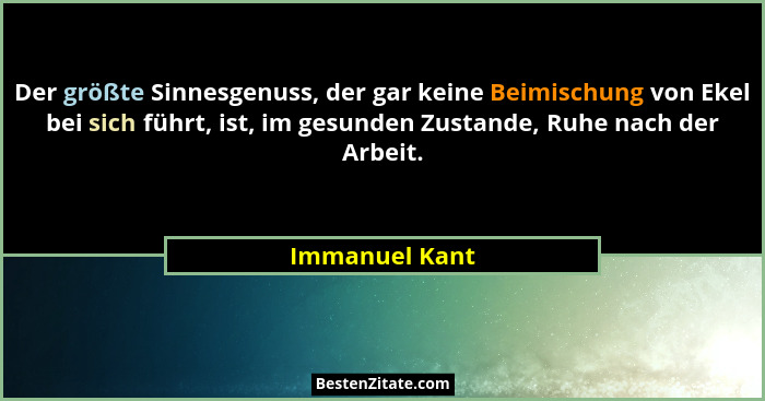 Der größte Sinnesgenuss, der gar keine Beimischung von Ekel bei sich führt, ist, im gesunden Zustande, Ruhe nach der Arbeit.