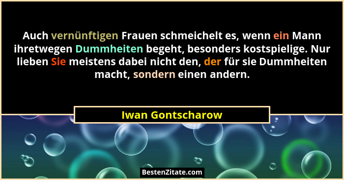 Auch vernünftigen Frauen schmeichelt es, wenn ein Mann ihretwegen Dummheiten begeht, besonders kostspielige. Nur lieben Sie meistens dabei nicht den, der für sie Dummheiten macht, sondern einen andern.