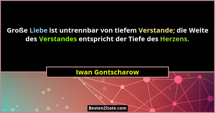 Große Liebe ist untrennbar von tiefem Verstande; die Weite des Verstandes entspricht der Tiefe des Herzens.